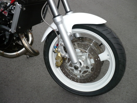 | 同様のリヤ周り 純正のリヤフェンダーを 角度合わせ ホイルは前後パウダーコート パールホワイト BT−090PRO |